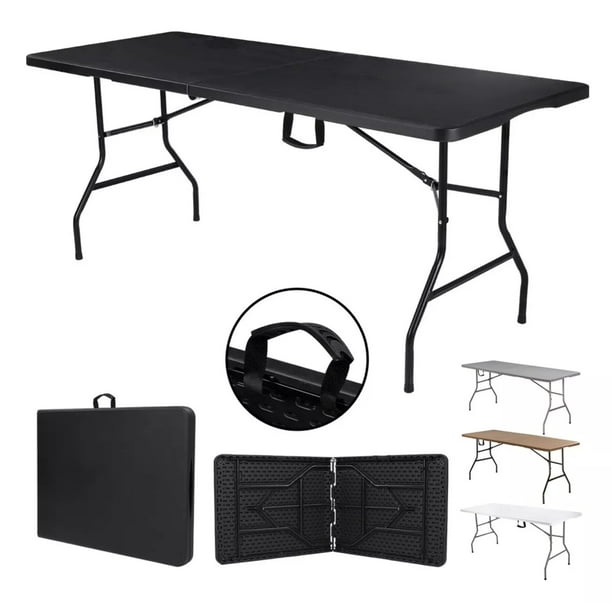 Mesa Plegable Plástico Tipo Portafolio Jardín Portátil 1.80m Color Negro