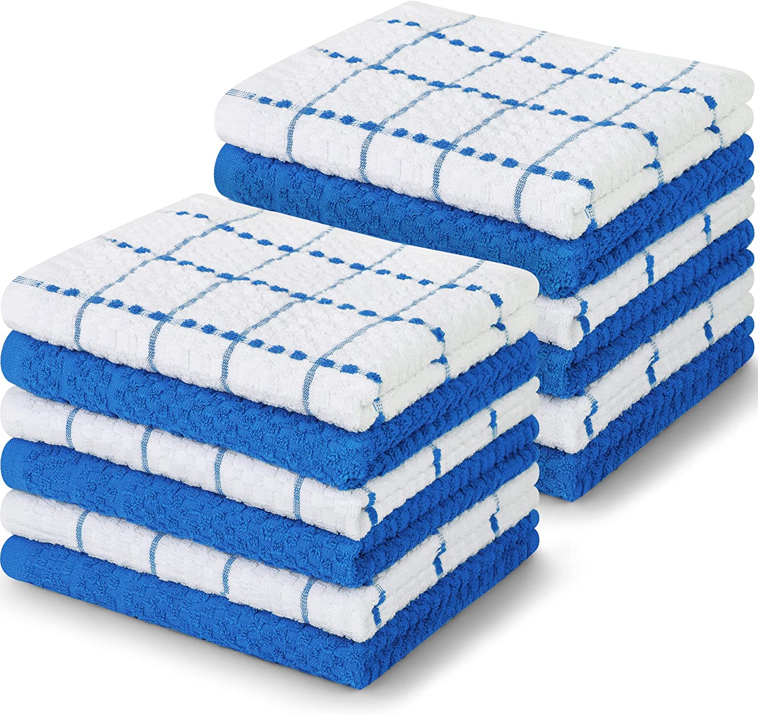 - VALUE PACK- Set includes 12 cotton dish towels with six black and six white dobby weave style kitchen towels measuring 15 x 25 inches
