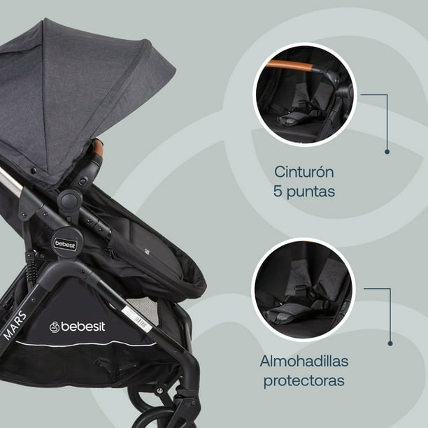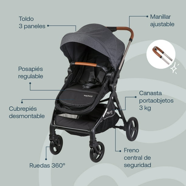 • Cuenta con un sistema de seguridad de 5 puntos para garantizar la protección del bebé. Su peso máximo es de 15 kg y es plegable, lo que facilita su transporte.