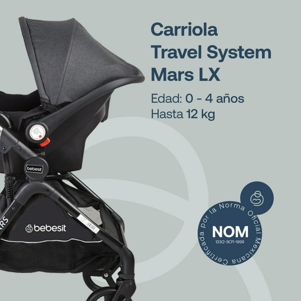 Carriola porta Bebé Travel System para auto - 3 en 1 - Moisés, Autoasiento y Carriola - Recién Nacidos o Hasta 15 kg