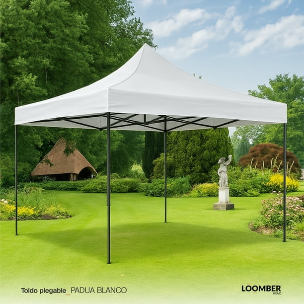 Combo Toldo Padua Blanco Impermeable 3x3 con Dos Mesas Plegables Blancas 1.8 metros Tipo Portafolio LOOMBER