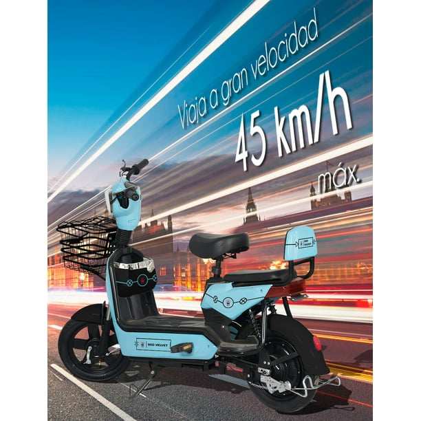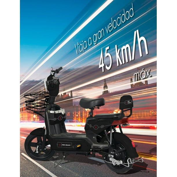 - Velocidad Máxima de 45 km/h, Diseño Urbano y Elegante, Canasta Delantera Incluida, Asiento Cómodo con Respaldo, Batería de Larga Duración, Fácil de Usar y Maniobrar, Económica y Ecológica, Marca Red Velvet, Ideal para Traslados Diarios, Diseño Compacto, Conducción Suave y Segura, Suspensión Delantera y Trasera, Frenos de Tambor, Diseño Robusto y Duradero, Pantalla Multifunción Intuitiva, Hasta 40 km de Autonomía, 3 Niveles de Velocidad, Motor de 350W, Batería de 48V/12AH, Diseño Urbano y Elegante Red Velvet.