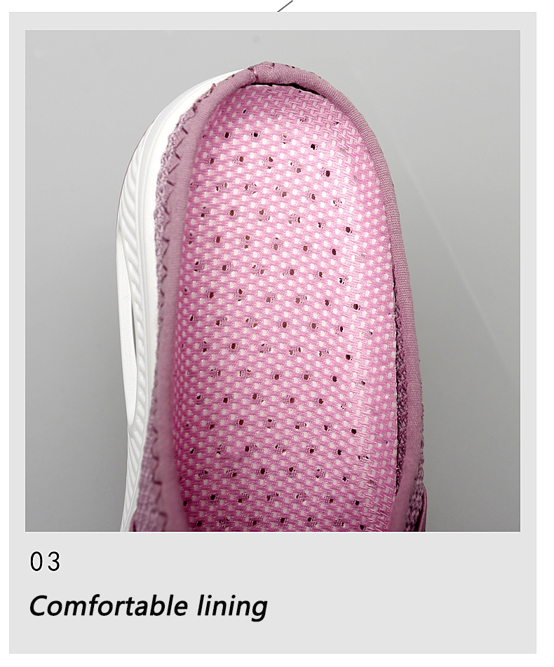 Paño de respiración de punta redonda con parte superior de punto elástico hueco, mantiene tus pies más cómodos. La malla es agradable para el calor del verano.